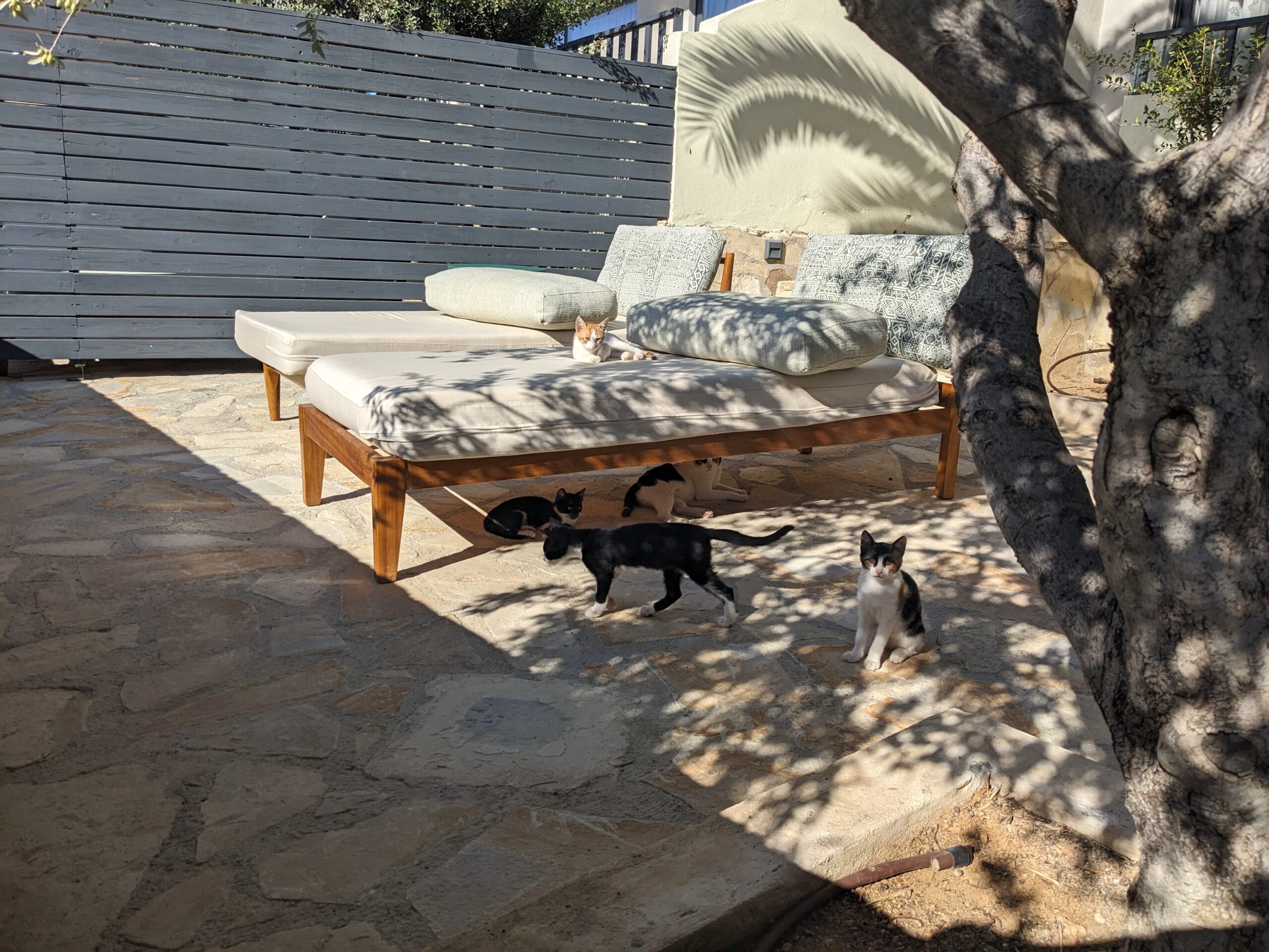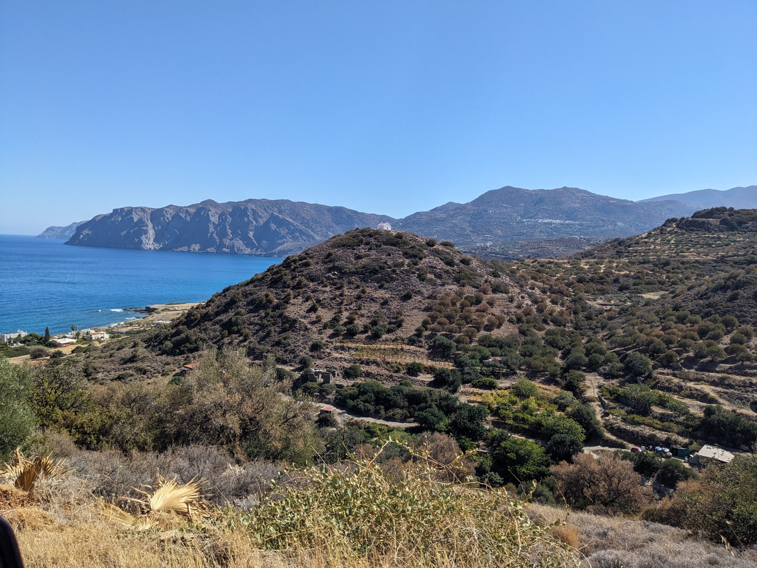 Waiting at GatwickBootcamp still happenedMountain view barBook was Let My People Go Surfing by Yvon ChouinardChilled eveningsCoffee by the Lybian SeaVillages high up in the mountainsRachel driving the 4×4Jeep Safari through the mountainsAbsolute unit of an Olive treeChurchMochlos the islandMochlos the townCats everywhereThe palace at KnossosHow it might have beenAntiquity recreation of a wall. Rachel and guide RitsaMinoan jugsMinoan LabrysBack room of Greek and Roman statues